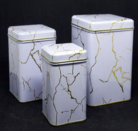 Набір 3 квадр банки «Білий мармур», 7,1x7,1x10,5 см, 8,9x8,9x11,4 см, 10,6x10,6x13 см