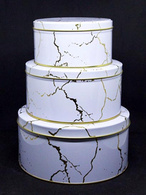 Набір 3 кругл банки «Білий мармур», 13,6x7,3 см, 16,8x8,3 см, 19,7x9 см