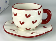 Чашка з блюдцем 300 мл «Червоні сердечка»