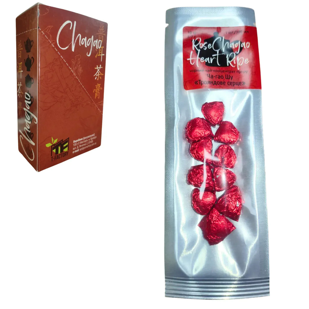 Ча-гао ШУ "Рожеве серце" cтик-пакет 10 порцій (Екстракт Шу Пуеру з додаванням чайної троянди). Смола Ча Гао - це розчинний чайний продукт з Китаю, природний, органічний екстракт чайного листя. На смак напій віддалено нагадує Шу Пуер, але цей смак не має аналогів у чайному світі.