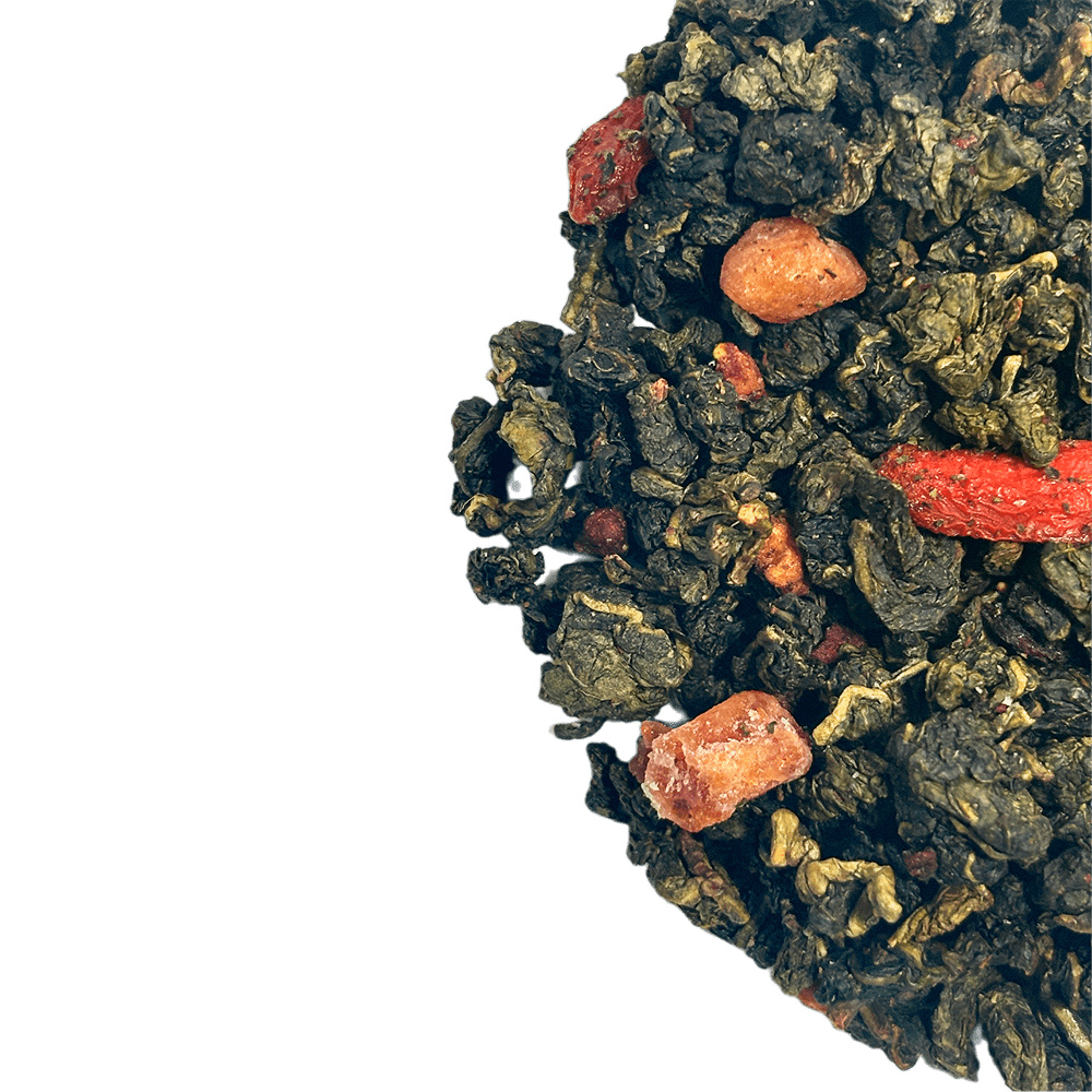 Смачний чай, оолонг в поєднанні з ягодами створює досить вдалу смакову комбінацію.