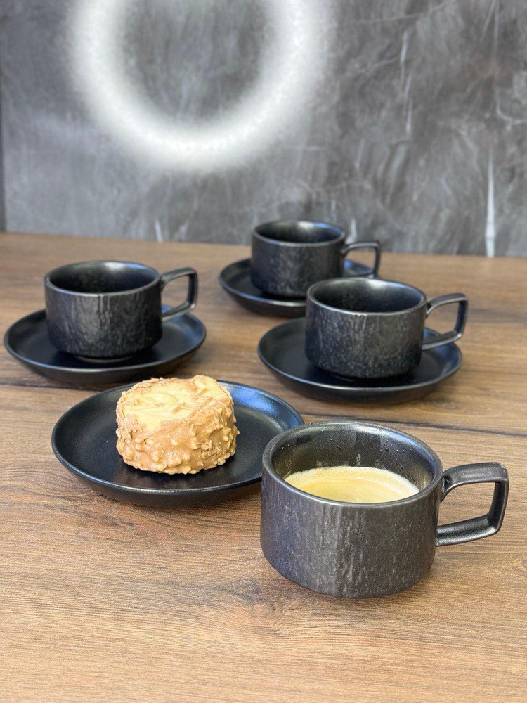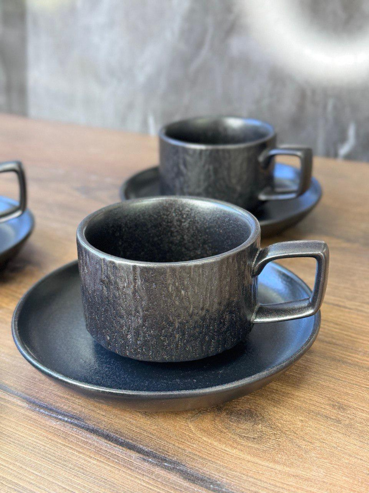 Набір чашок з блюдцем "Чорний обеліск",190 мл  4 шт/набір Набір чашок з блюдцем "Чорний обеліск",190 мл  4 шт/набір. Зображення №2 Набір чашок з блюдцем "Чорний обеліск",190 мл  4 шт/набір. Зображення №3