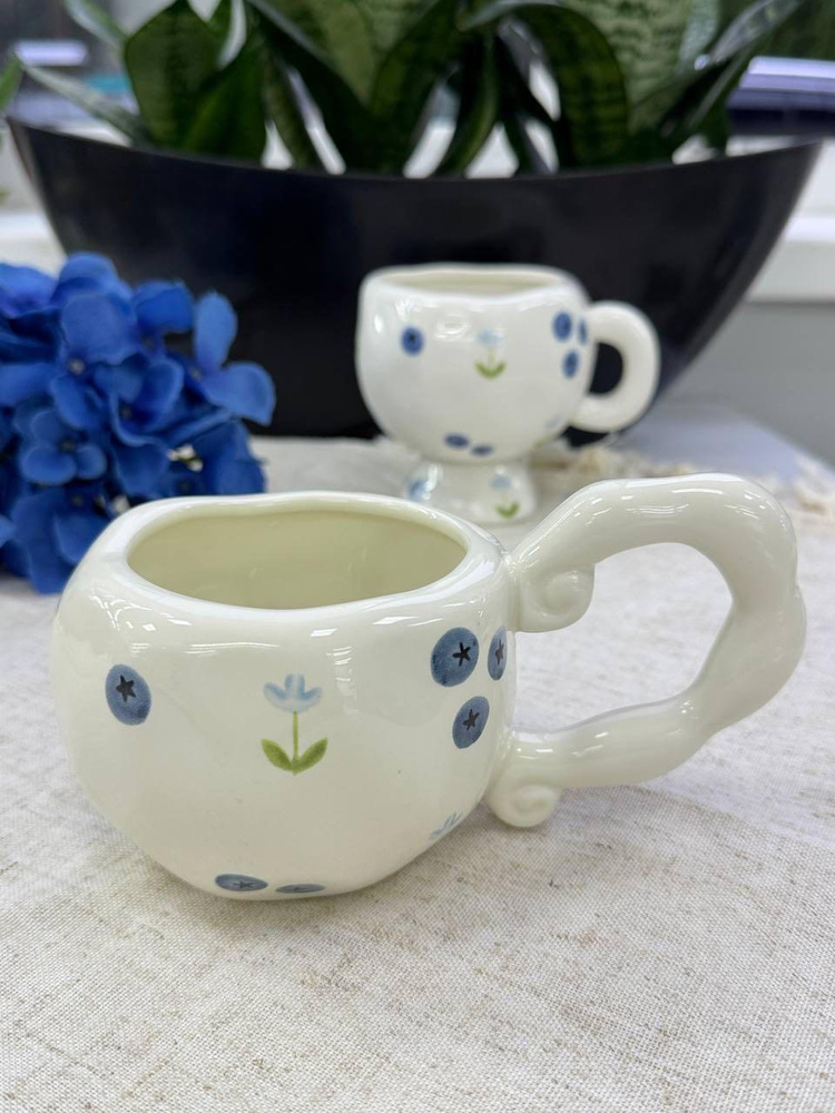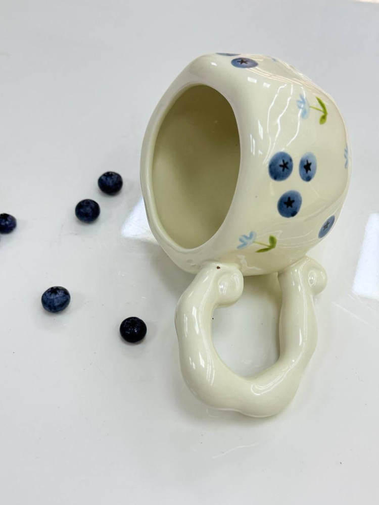 Декор із соковитими ягодами лохини додає свіжості та літнього настрою, роблячи цю кружку не лише функціональною, а й естетичною прикрасою кухні. Такий посуд чудово підходить для щоденного користування або як милий подарунок.