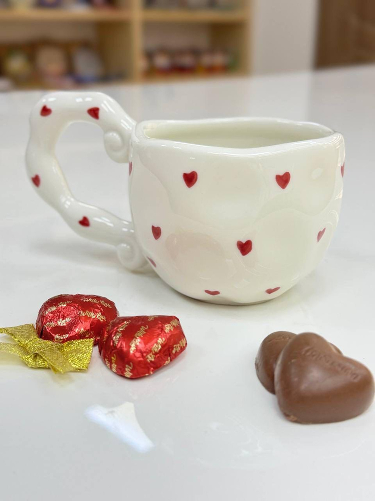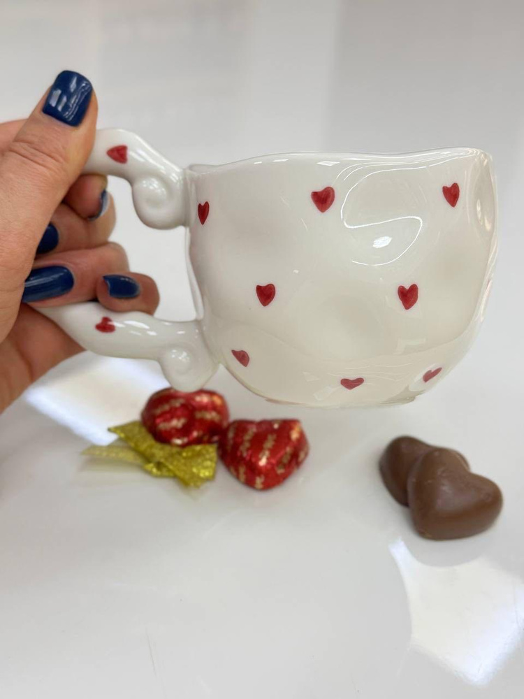 Декор із маленькими сердечками створює атмосферу тепла й романтики, тому кружка стане не лише практичним посудом, а й милим акцентом у вашій кухні чи чудовим подарунком для близької людини.