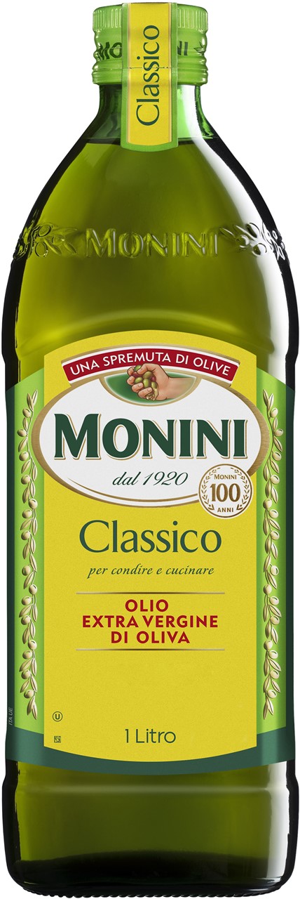 Оливкова олія Monini Classico Extra Vergine (Моніні Класик) 1000ml. —чудове і натуральне масло першого холодного віджиму з ніжним смаком і унікальним ароматом свіжих оливок, виготовлення якого є результатом багаторічного досвіду у виборі масла.