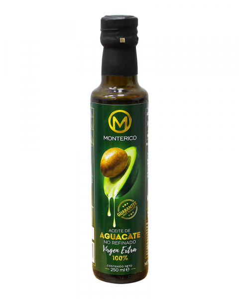 Олія авокадо Monterico Aceite de Aguacate Virgin Extra NO REFINADE - повністю натуральна нефільтрована олія першого холодного віджиму. Зберігає у собі всі корисні властивості плодів авокадо. Відмінно підходить для заправки салатів, каш, приготування різноманітних соусів.