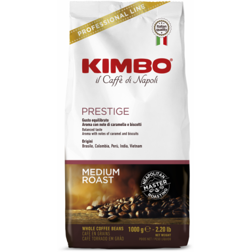 Кава в зернах Kimbo Prestige - є сумішшю добірних зерен кави, як продуману комбінацію різних видів Арабіки (100%). Отримана шляхом унікального способу обробки та обсмажування суміш високого класу з делікатним смаком. Кава в зернах Kimbo Prestige – преміум кави з ніжним смаком та «любов'ю», вираженою в кожній чашці.