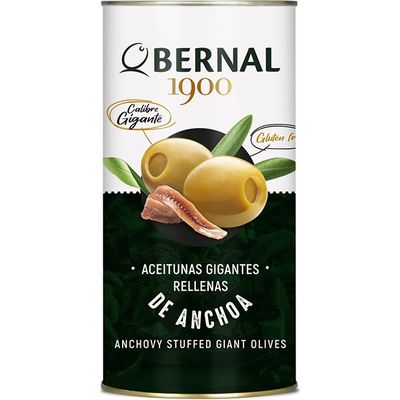 Зелені оливки Bernal, фаршировані анчоусом, є популярним продуктом серед шанувальників середземноморської кухні. Ці оливки відрізняються інтенсивним смаком, завдяки поєднанню ніжних зелених оливок та пікантного анчоуса всередині. Вони ідеально підходять для подачі як закуска, а також можуть бути використані в салатах, піці або інших стравах. Такий продукт має тривалий термін зберігання завдяки консервуванню в банці.