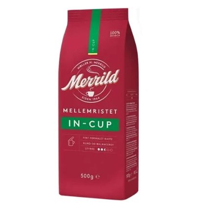 Merrild In-Cup виготовляється зі 100% зерен Арабіки, які повільно дозрівають на сонці у найкращих високогірних регіонах.