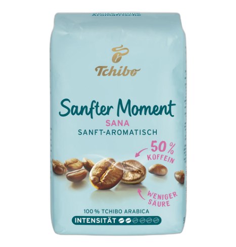 Зерновий м'який збалансований бленд, зі зниженим кофеїном і низькою кислотністю, створений фахівцями Tchibo з добірних зерен Арабіки. Приготовлені в процесі повільної обсмажування, кавові зерна розкривають свої найкращі якості. Готовий напій з тонким характером має гармонійний ніжний смак і аромат.