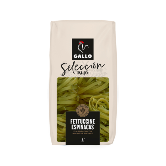 Макаронні вироби Gallo Seleccion 46 Fettuccine Espinacas — це паста преміумкласу, створена з високоякісної пшениці та за традиційною технологією з використанням бронзових форм, що надає їй особливої текстури та смаку.