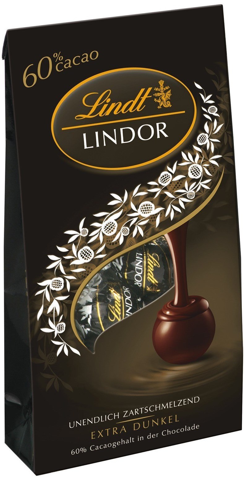 Набір шоколадних цукерок Lindor складається з цукерок із ніжною м'якою начинкою, покритою екстра чорним шоколадом.