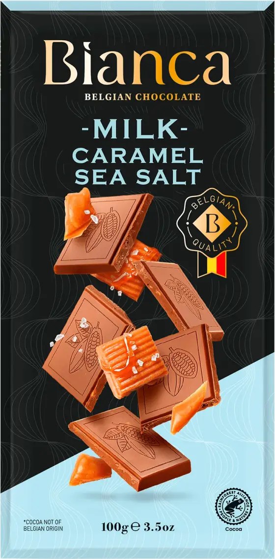 Вишуканий шоколад Bianca Milk Caramel Sea Salt — це гармонійне поєднання ніжного молочного шоколаду, ароматної карамелі та легкої нотки морської солі. Такий контраст створює унікальний баланс солодкого й солоного смаку, який розкривається у кожному шматочку.