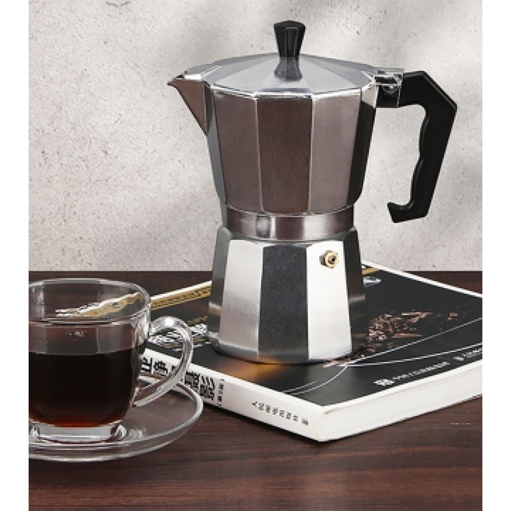 Алюмінева гейзерна кавоварка на 50 мл, зручна у експлуатації.