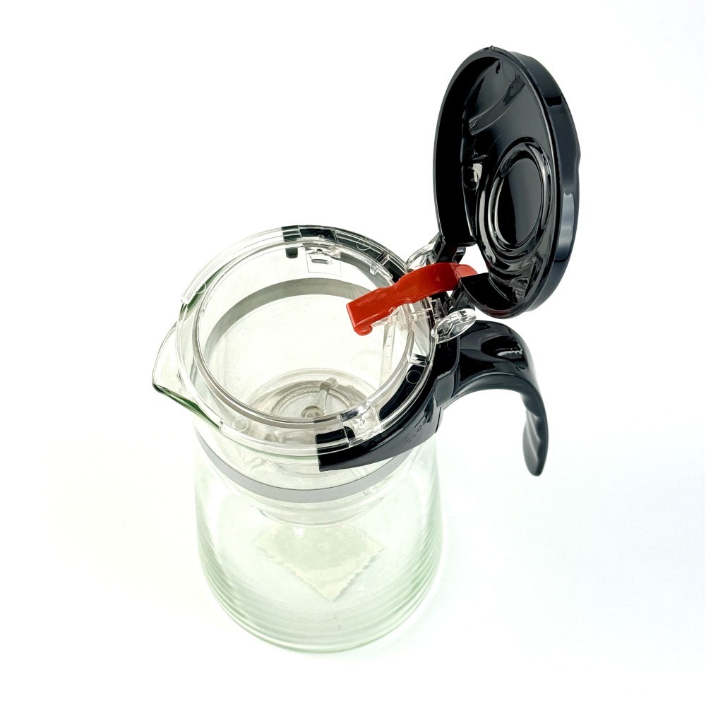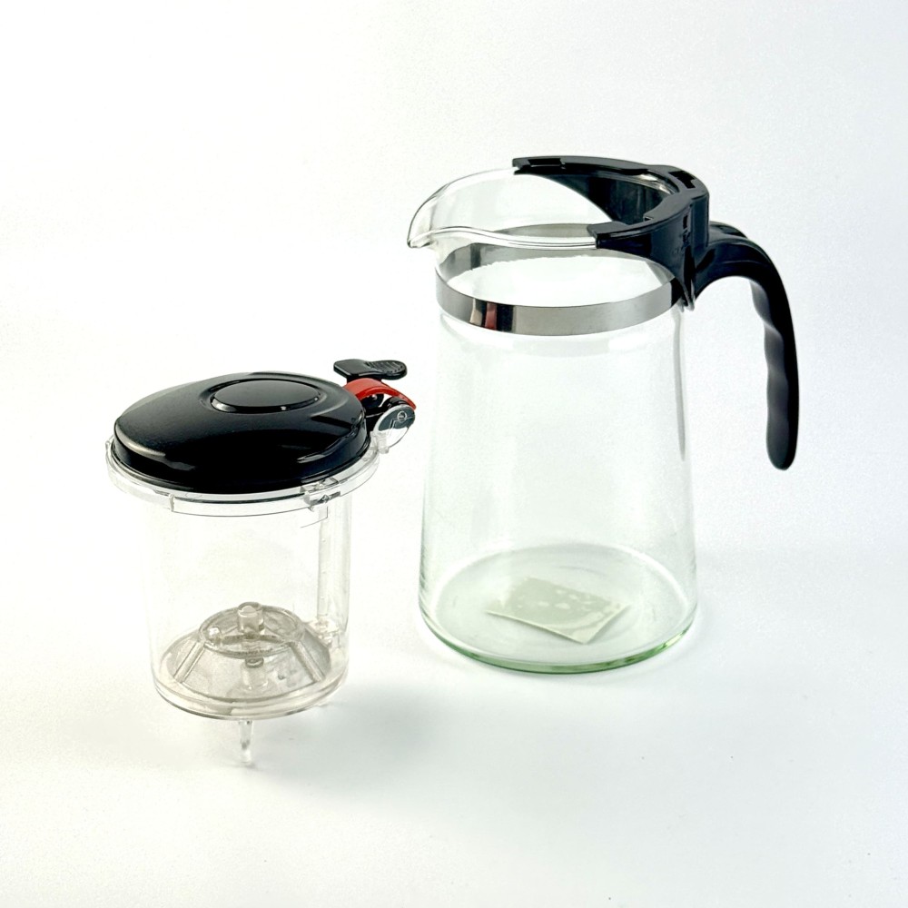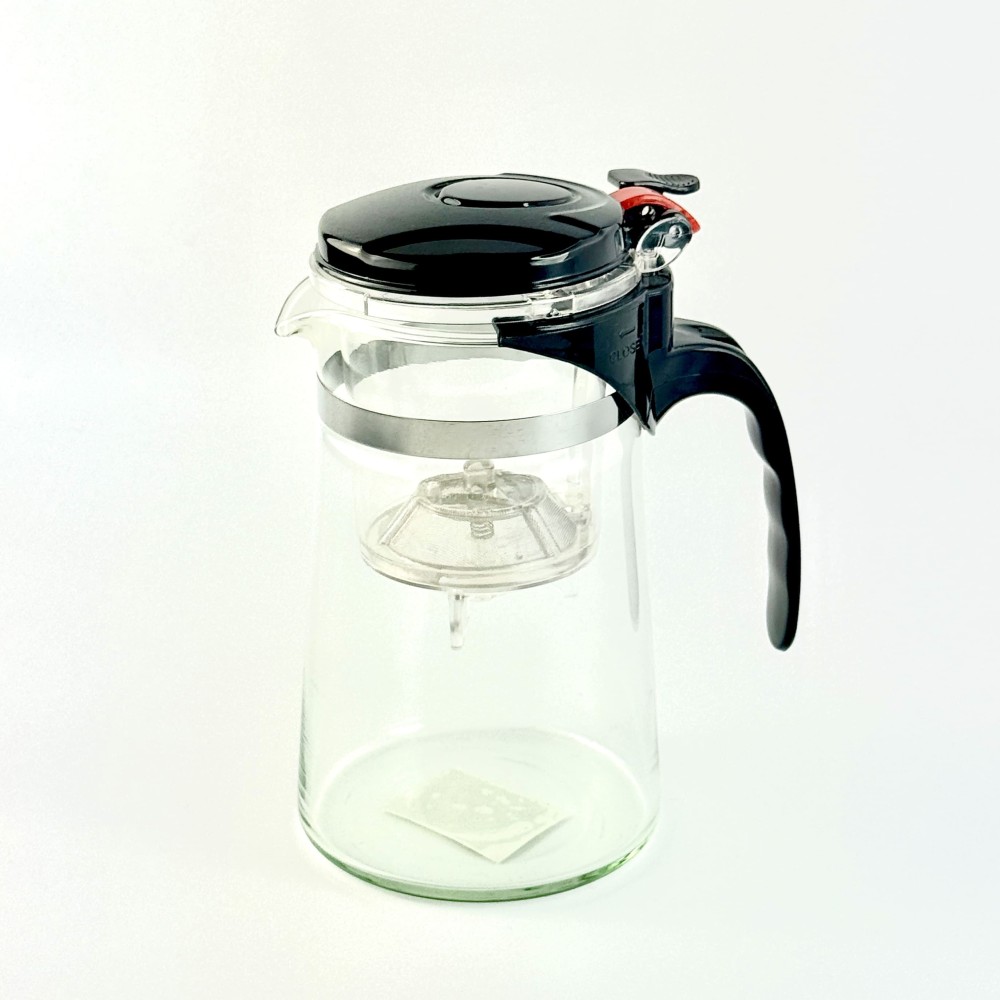 Скляний заварник Тіпод 750 мл – стильна та зручна ємність для заварювання чаю та трав’яних напоїв. Усередині розташована колба з вбудованим фільтром і спеціальним клапаном, який пропускає готовий настій у основний чайник. Завдяки цьому можна легко регулювати міцність чаю, поєднувати різні інгредієнти та насолоджуватись багатим смаком і ароматом напоїв. Діаметр: 100 мм Висота: 170 мм Об’єм: 750 мл Заварник упакований у стильну подарункову картонну коробку, що робить його чудовим варіантом як для власного використання, так і для подарунка.