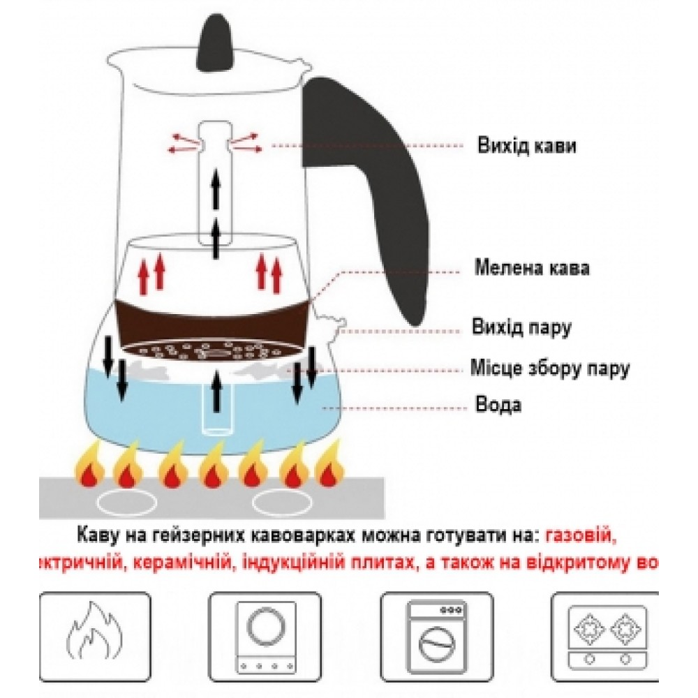 Універсальна кавоварка Класика гейзерного типу, об ємом 300 мл. Стане в нагоді кожному кавоману!