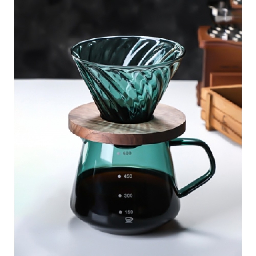 Пуровер - спосіб заварювання фільтр-кави, при якому гаряча вода проходить через мелену каву, що знаходиться у спеціальній лійці з паперовим фільтром. Від даного способу і пішла назва посуду, який допомагає готувати один із найсмачніших напоїв! Пропонуємо придбати пуровер Йорга із зеленого скла на 600 мл.