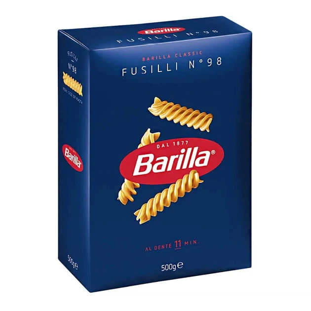 Barilla Fusilli - популярні макарони, виготовлені з твердих сортів пшениці. У перекладі з італійської назва "fuso" перекладається як "веретено", форма макаронів нагадує закручені по спіралі стрічки. Завдяки своїм формі, макарони фузіллі чудово утримують на своїй поверхні соуси різної консистенції, від легких і простих, до насичених і креативних.