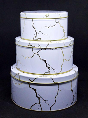 Набір 3 кругл банки «Білий мармур», 13,6x7,3 см, 16,8x8,3 см, 19,7x9 см