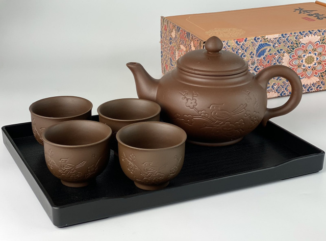 Набір 4 піали 100 мл + чайник 750 мл «ВЕСНЯНИЙ» (СВІТЛИЙ) + таця