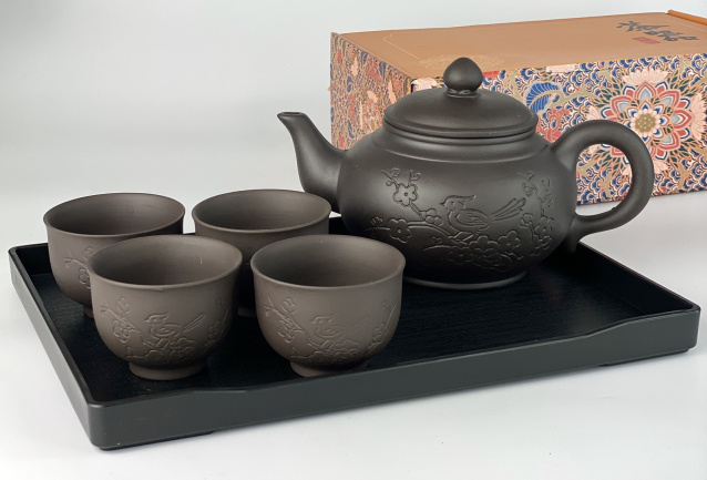 Набір 4 піали 100 мл + чайник 750 мл «ВЕСНЯНИЙ» (ТЕМНИЙ) + таця