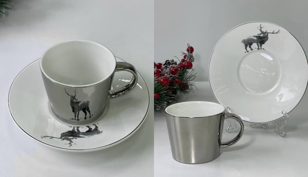 Чашка з блюдцем «Дзеркальний олень», 250 мл