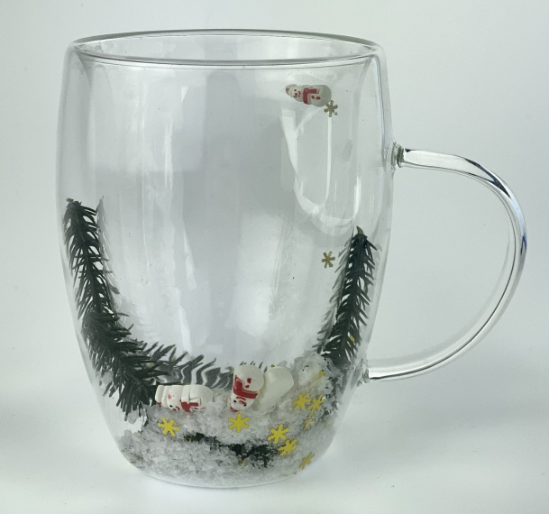 Кружка подв скло 300 мл «Новорічний настрій 3», (сніговик)