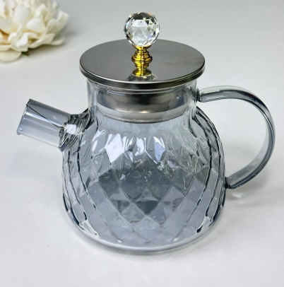 Чайник скляний «Срібний ромбус» 1000 мл (функц. 800 мл)