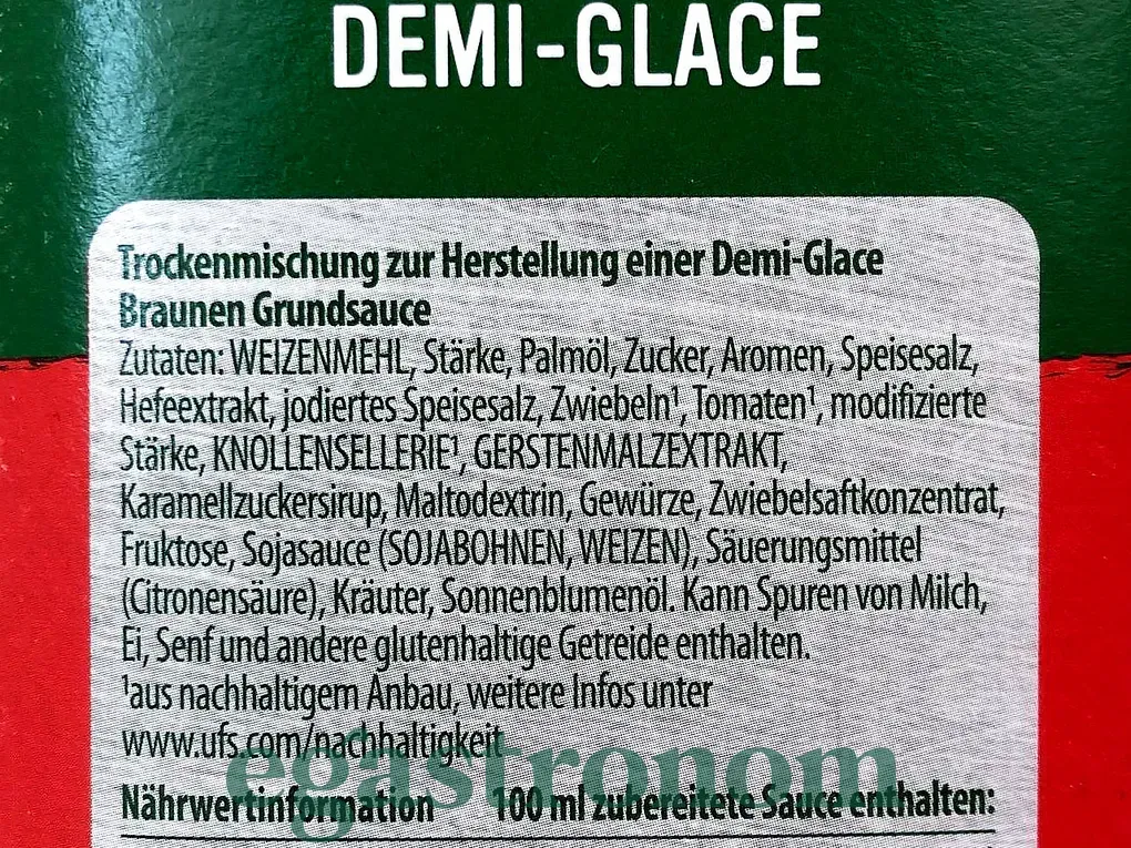 Деміглас - один з основних соусів французької кухні. Він готується з яловичих кісток, м'яса, овочів цибулю, моркву, томати, коріння селери і петрушки, трав і спецій. Попередньо кістки, м'ясо і овочі обсмажуються, заливаються водою і варяться при дуже слабкому кипінні 24-36 годин. Готовий demi-glace проціджують і при необхідності додатково випарюють до потрібної консистенції. Його приготування в домашніх умовах важко, тому простіше купити готовий сухий порошок, який замінює рідкий demi-glace. ТОП запити Паста шоколадна Замовити каву Вироби з борошна Засіб для миття посуди Майонезні соуси Варення Купити чай україна