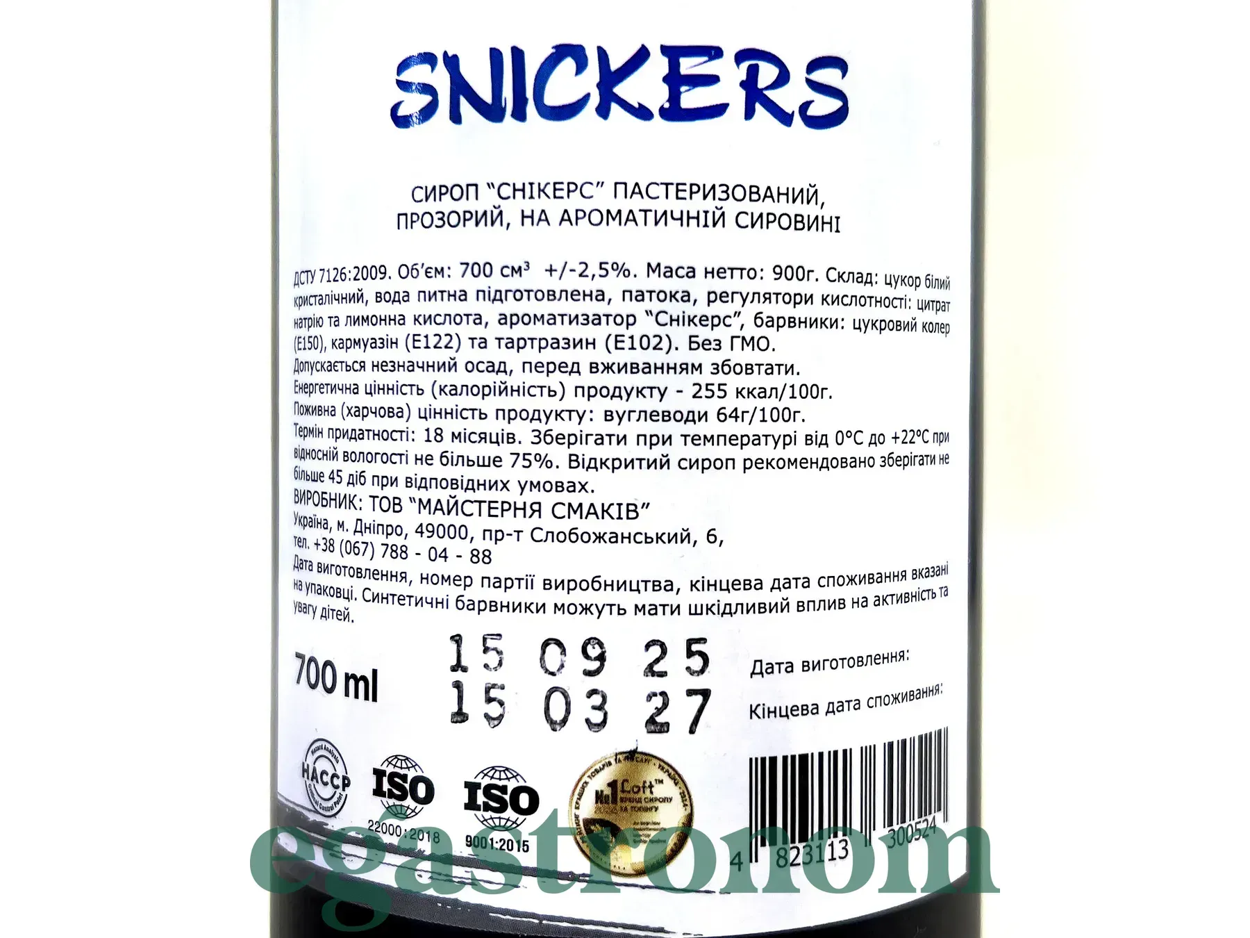 Сироп снікерс Лофт Loft snickers 700ml 9шт/ящ Сироп снікерс Лофт Loft snickers 700ml 9шт/ящ. Зображення №2