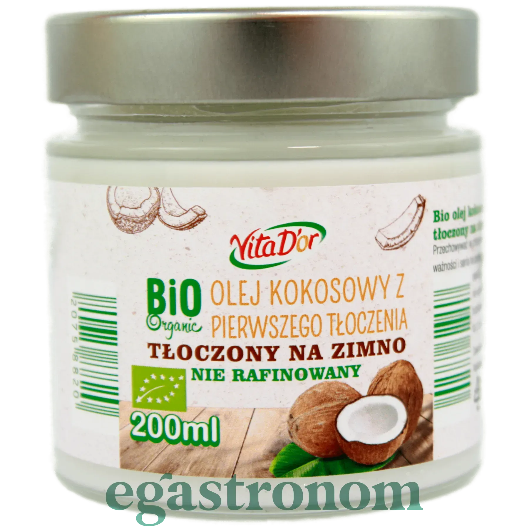 Олія кокосова нерафінована Віта Дор Vita D'or 200ml 6шт/ящ Олія кокосова нерафінована Віта Дор Vita D'or 200ml 6шт/ящ. Зображення №2