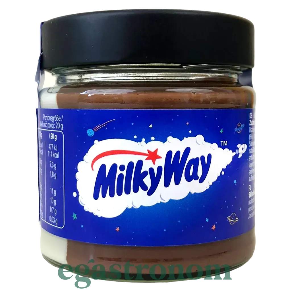 Шоколадна паста Milky Way - це крем з білого і темного шоколаду повторює смак відомого батончика Мілкі Вей. Ніжна і молочна, шалено смачна шоколадна паста Milky Way відмінно підходить для тостів, млинчиків, сирників, панкейк або просто їсти ложкою. не залишить байдужими ні дітей ні дорослих. Оригінальний варіант на подарунок ТОП запити Купити молоко Інтернет магазин солодощів Сирок плавлений ціна Пральні капсули Порошки для прання Сир Козячий сир ціна