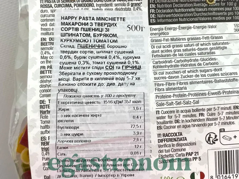 Макарони хеппі паста Далла Коста Dalla Costa happy pasta 500g 12шт/ящ Макарони хеппі паста Далла Коста Dalla Costa happy pasta 500g 12шт/ящ. Зображення №2