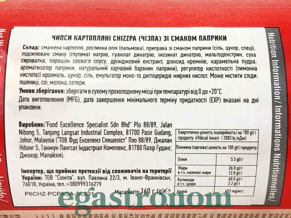 Чипси картопляні паприка Чіззпа Chizzpa 160g 14шт/ящ Чипси картопляні паприка Чіззпа Chizzpa 160g 14шт/ящ. Зображення №2
