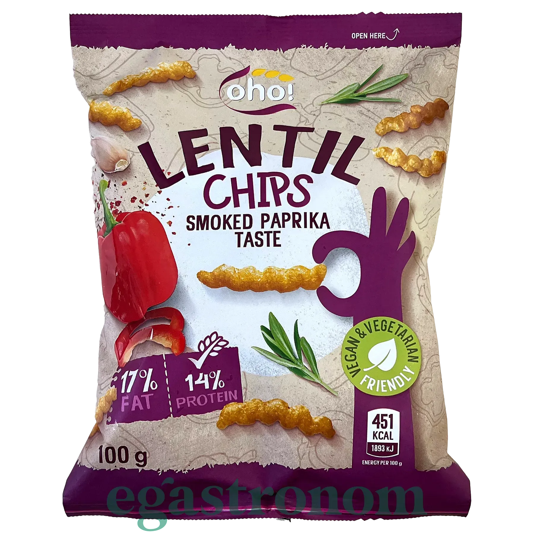 Чипси з сочевиці зі смаком копченої паприки Охо Оho smoked paprika 100g 23шт/ящ Чипси з сочевиці зі смаком копченої паприки Охо Оho smoked paprika 100g 23шт/ящ. Зображення №2
