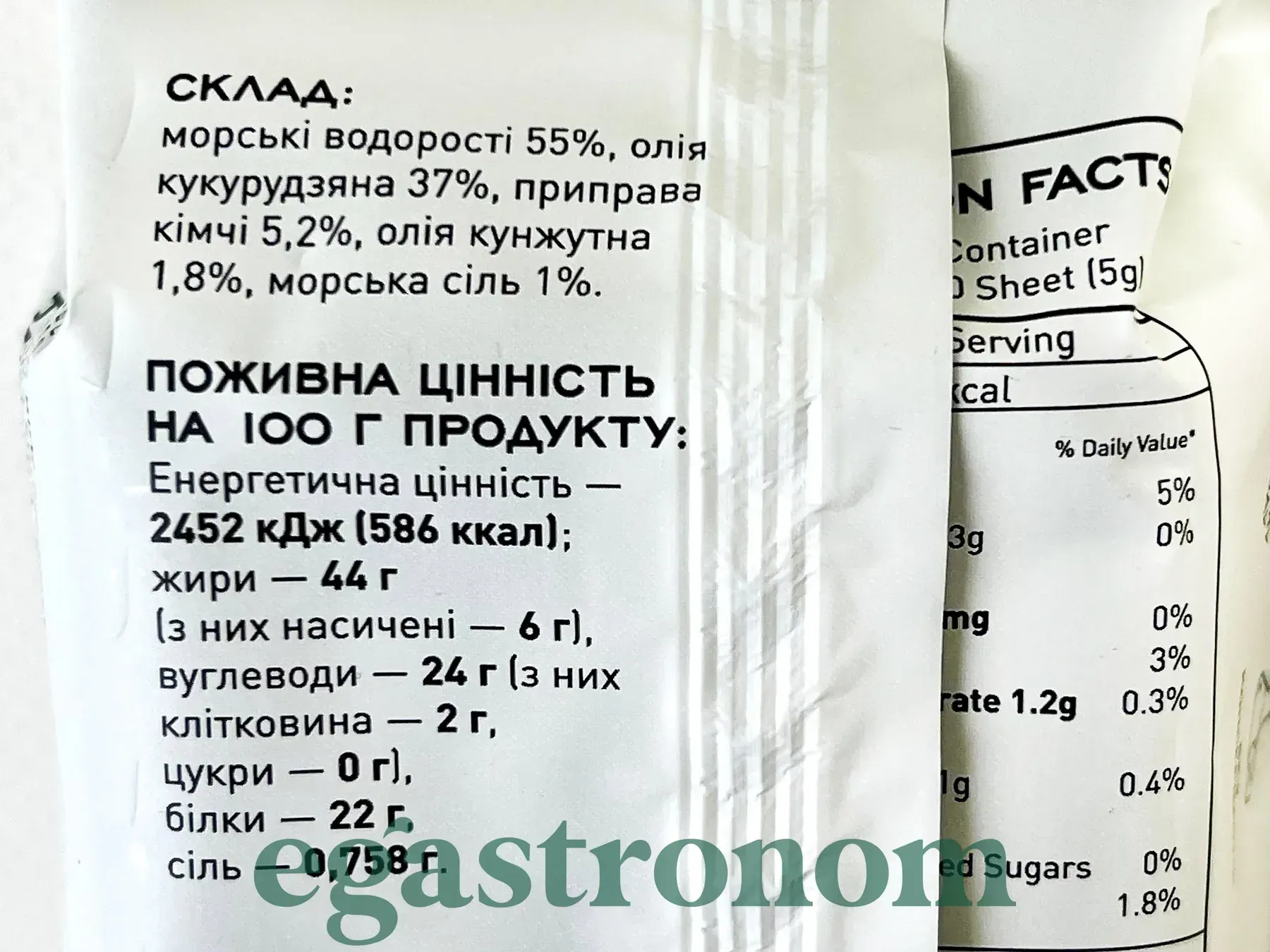 Чипси з норі кімчі Море Норі More Nori 5g 36шт/ящ Чипси з норі кімчі Море Норі More Nori 5g 36шт/ящ. Зображення №2