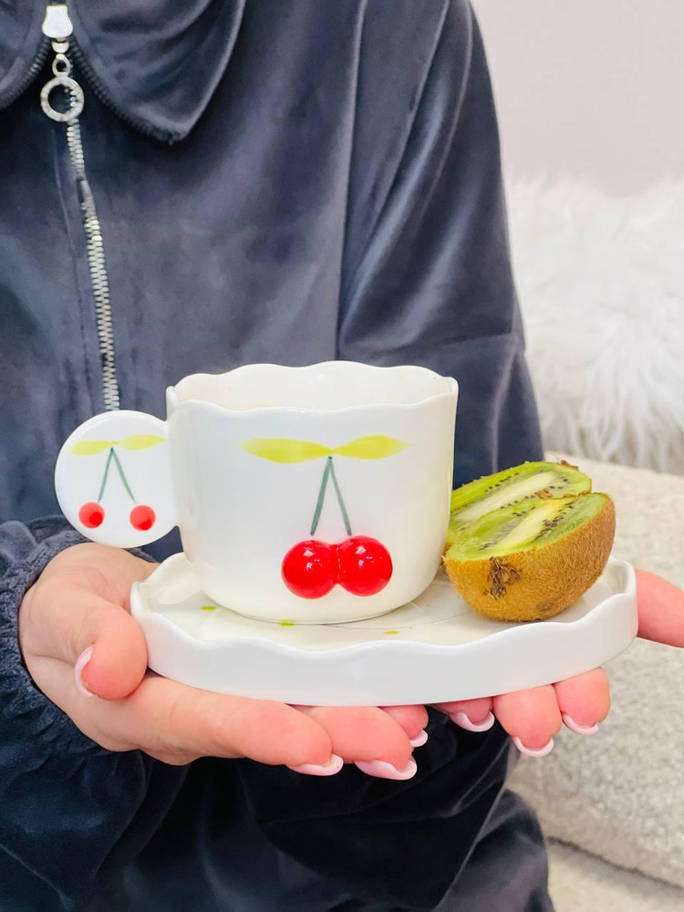Чашка з блюдцем «Вишневий етюд» 180 мл Чашка з блюдцем «Вишневий етюд» 180 мл. Зображення №2 Чашка з блюдцем «Вишневий етюд» 180 мл. Зображення №3