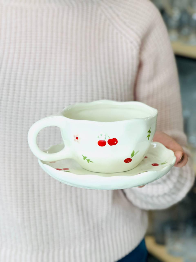 Чашка з блюдцем «Вишнева манія» 300 мл Чашка з блюдцем «Вишнева манія» 300 мл. Зображення №2
