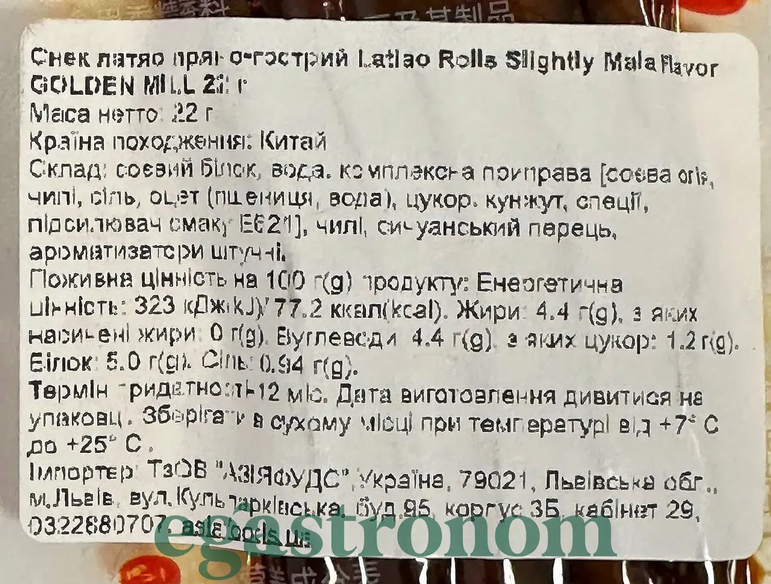 Снеки латяо пряно-гострі Голден мілл Golden mill latiao rolls 440g 20шт/пач Снеки латяо пряно-гострі Голден мілл Golden mill latiao rolls 440g 20шт/пач. Зображення №2