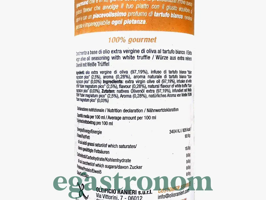 Олія Ranieri - 100% італійська оливкова олія з екстрактом білого трюфеля. Це чудове доповнення для Ваших кулінарних експериментів. Оливкова олія Ranieri - це смак сонячної Італії і користь для здоров`я. Високий вміст Омега-3 ненасичених жирних кислот перетворює олію в незмінного супутника здорового способу життя. ТОП запити Плавлений сир ціна Ціни на підгузники Вершкове масло купити Оливки ціна Сир нарізка Напій енергетик Спеції та прянощі