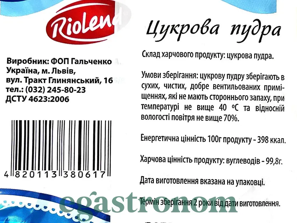 Цукрова пудра Ріоленд Riolend 200g 20шт/ящ Цукрова пудра Ріоленд Riolend 200g 20шт/ящ. Зображення №2