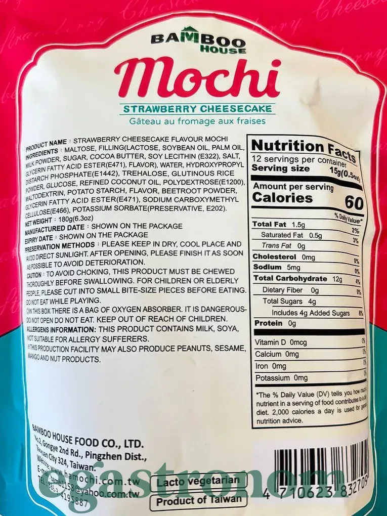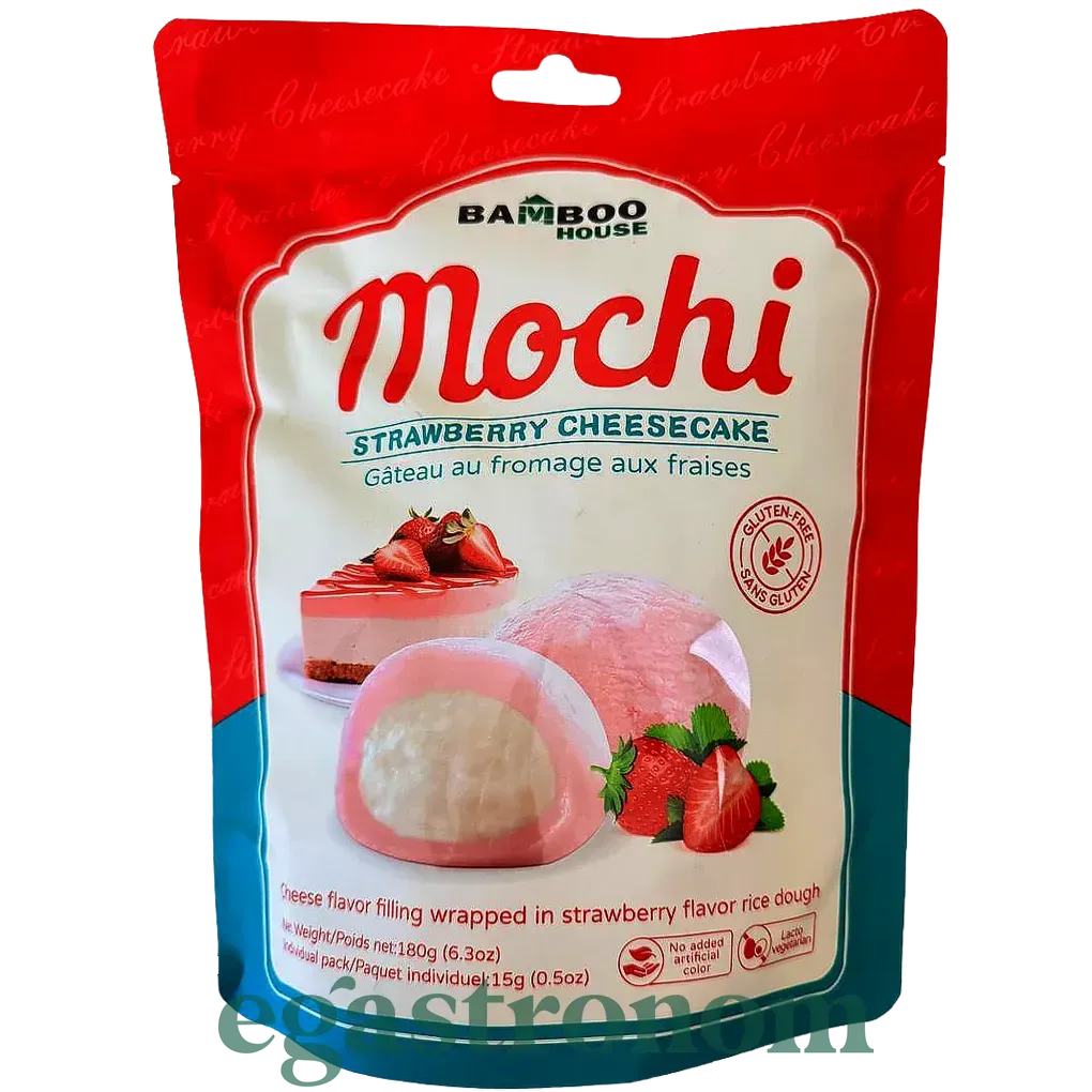 Десерт мочі японський полуничний чізкейк (без глютену) Бамбу Хаус Bamboo House 180g 20шт/ящ Десерт мочі японський полуничний чізкейк (без глютену) Бамбу Хаус Bamboo House 180g 20шт/ящ. Зображення №2