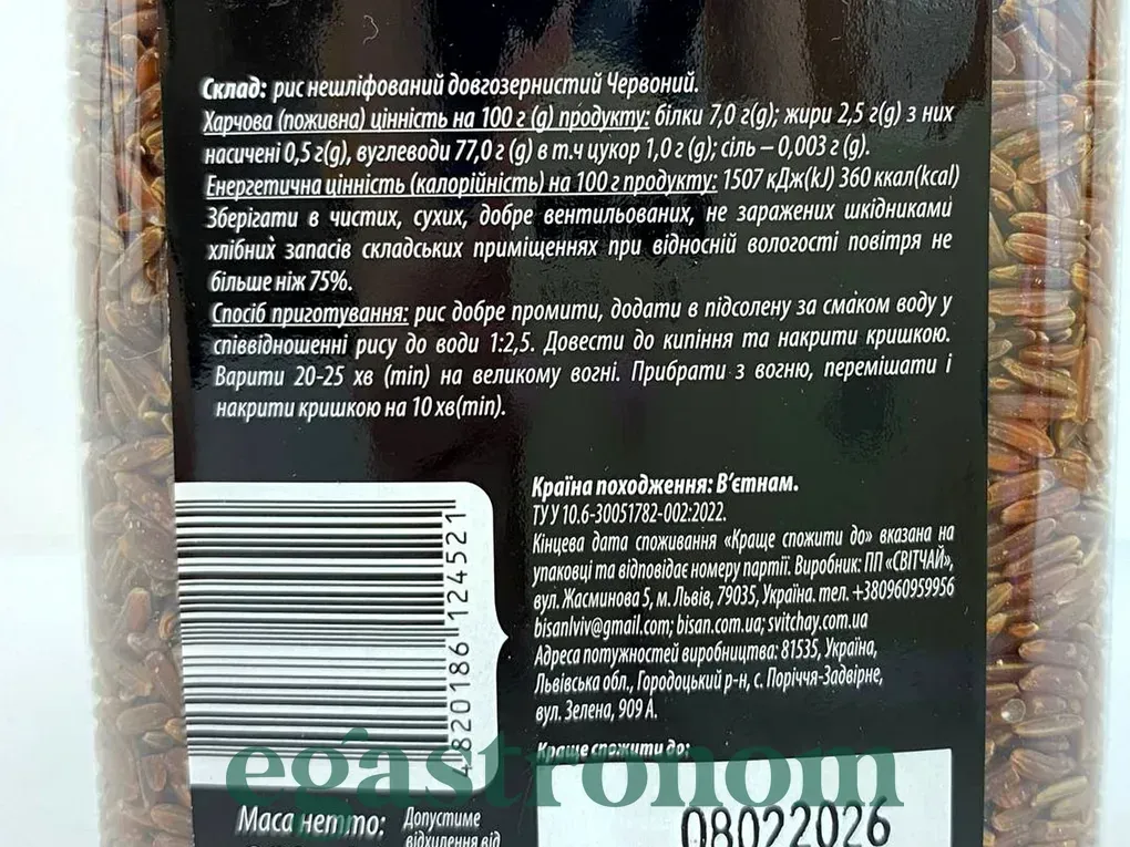 Рис червоний відрізняється від звичайного білого рису своїм барвистим виглядом і характерним, трохи солодкуватим смаком. Червоний рис має більш грубу текстуру порівняно з іншими сортами рису, що робить його дещо крупнішим. Цей рис часто використовується в стравах східноазіатської кухні, таких як китайські та тайські страви. Він може бути варений, приготовлений на пару або використаний у складі супів, салатів і гарнірів. Багатий на антиоксиданти та важливі поживні речовини, рис червоний також відомий своїми корисними властивостями для здоров'я. ТОП запити