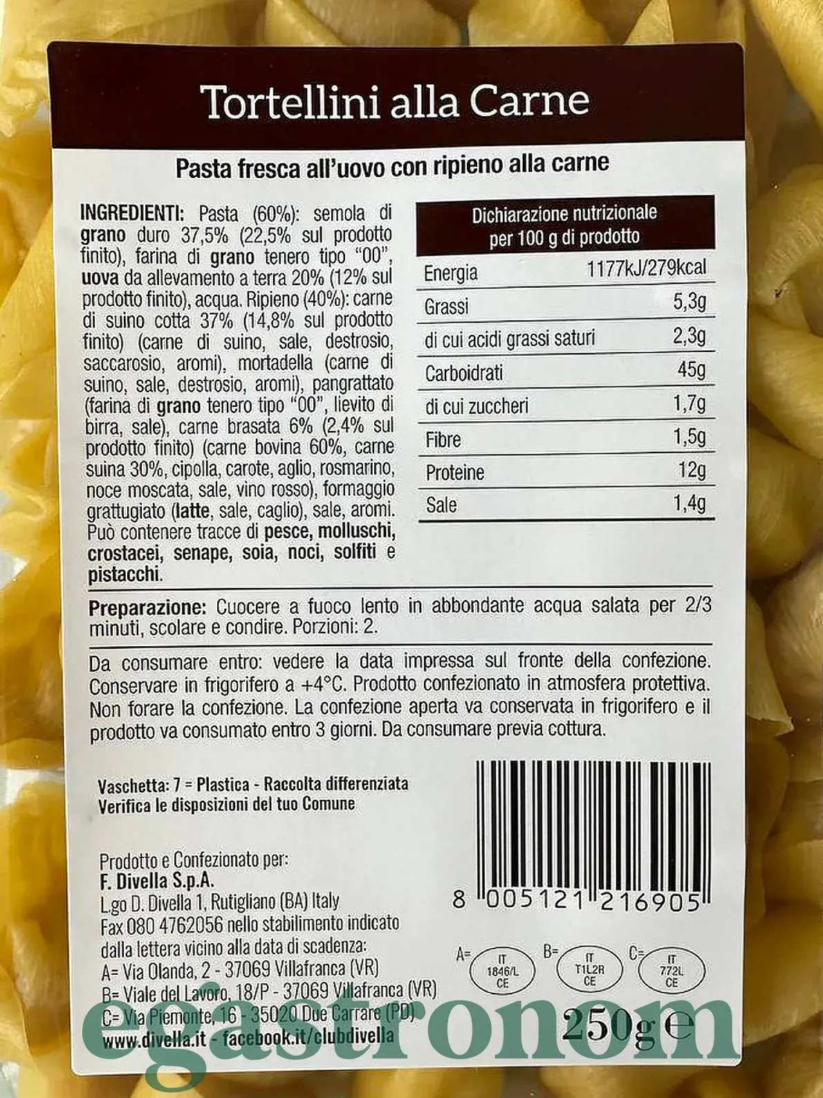 Тортелліні з шинкою Дівелла Divella 250g 10шт/ящ Тортелліні з шинкою Дівелла Divella 250g 10шт/ящ. Зображення №2