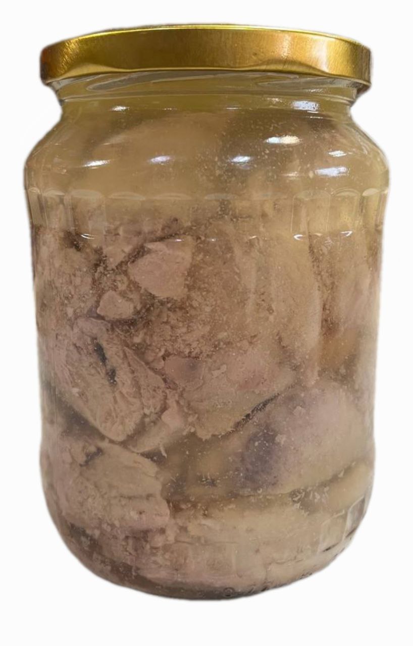 Зовнішній вигляд - печінка щільно заповнює простір банки, жир прозорий за кімнатної температури (при зниженні температури мутнішає), самі шматочки печінки однорідного кольору, щільні та тримаються докупи, але разом з тим мають ніжну консистенцію. Текстура - щільна, але водночас тане в роті.