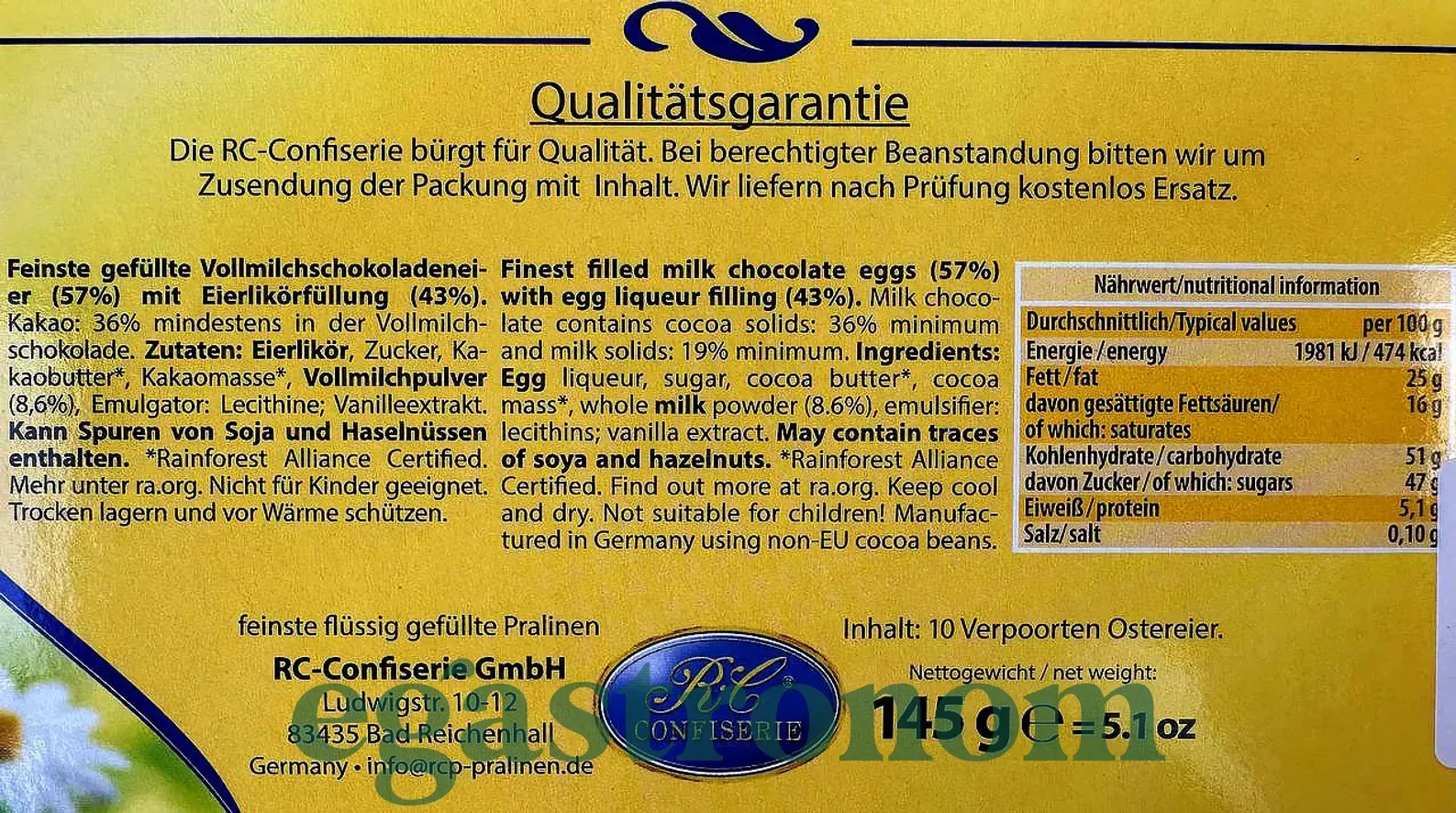 Шоколадні яйця Верпортен Verpoorten Ostereier 145g 8шт/ящ Шоколадні яйця Верпортен Verpoorten Ostereier 145g 8шт/ящ. Зображення №2