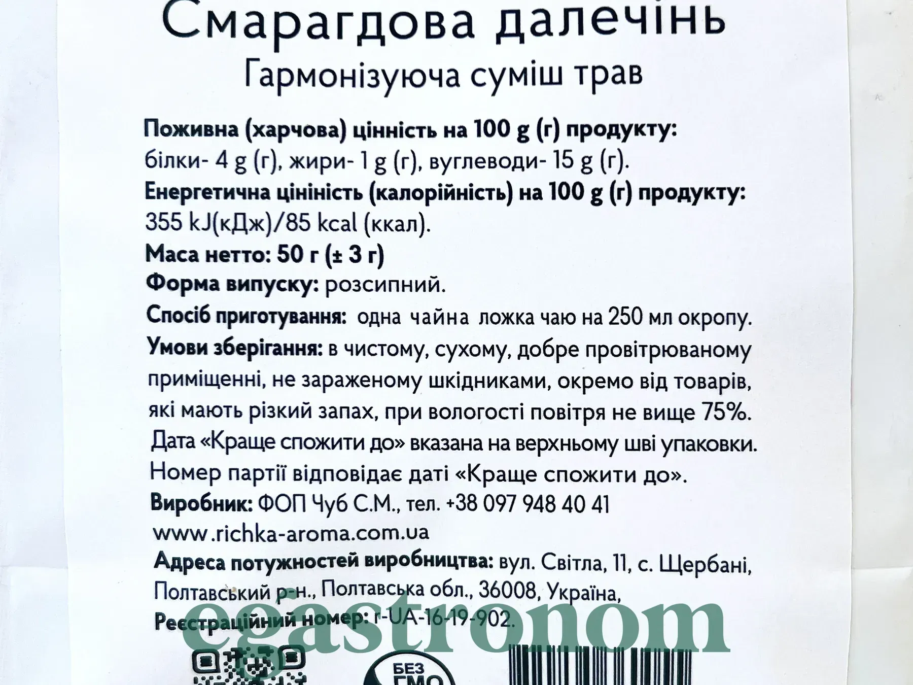 Чай трав'яний Смарагдова далечінь Річка Richka 50g 20шт/ящ Чай трав'яний Смарагдова далечінь Річка Richka 50g 20шт/ящ. Зображення №2