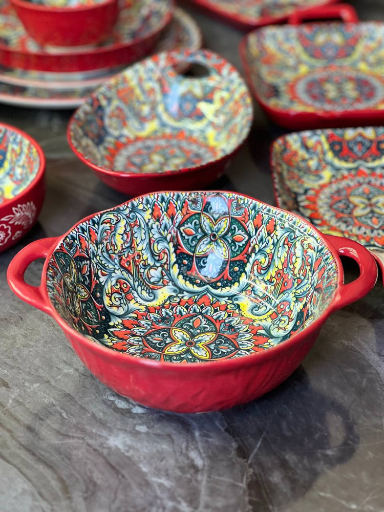 Салатник з ручками 24,5x19x7, 1100 мл «Мальований червоний» Салатник з ручками 24,5x19x7, 1100 мл «Мальований червоний». Зображення №2