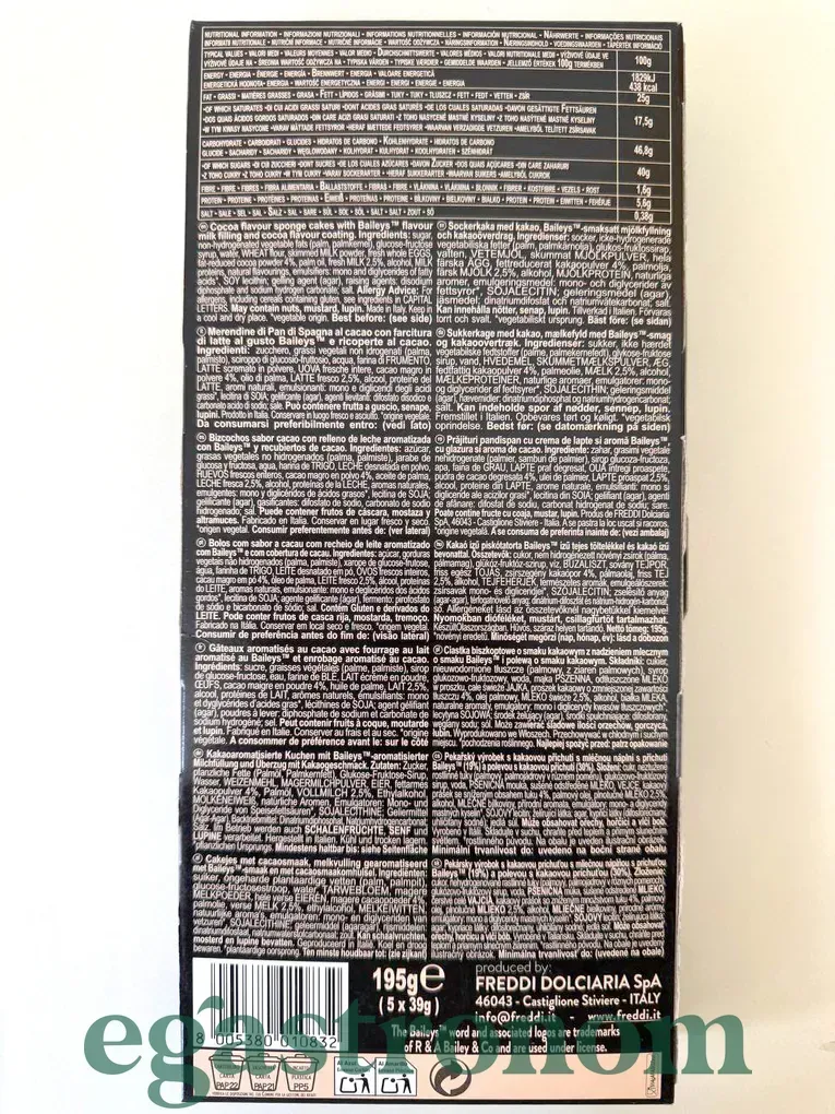 М'які какаові бісквіти з начинкою на основі молочного крему з ароматом лікеру Baileys. Бісквіти вкриті шоколадною глазур’ю. Ідеальний варіант десерту для любителів ніжної текстури та вишуканого смаку ірландського крему. ТОП запити