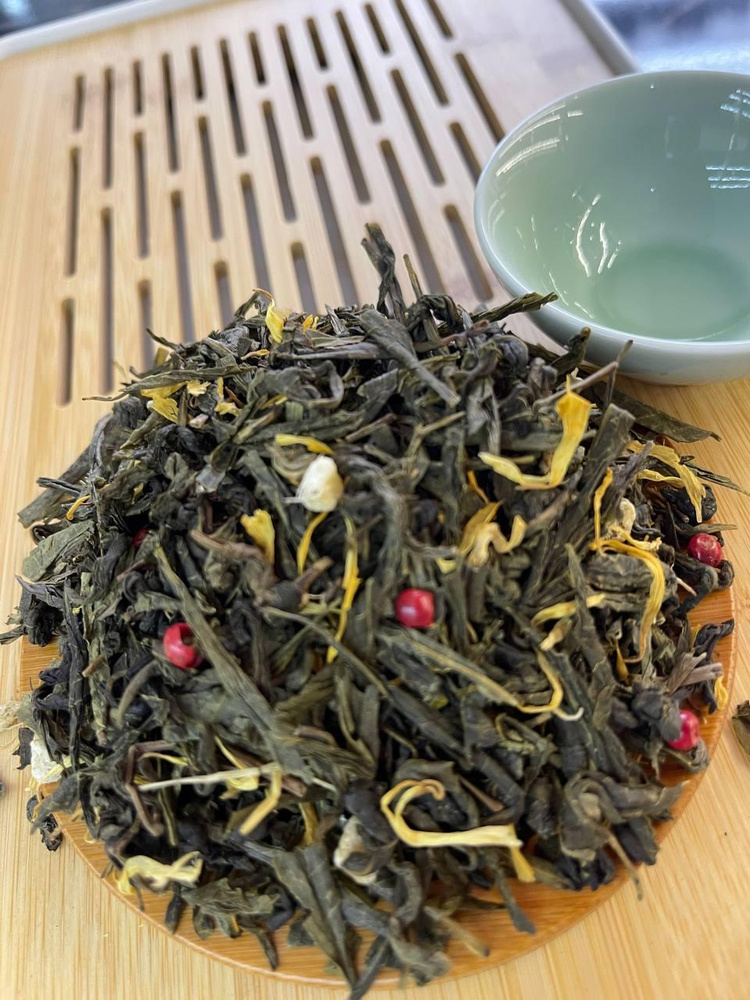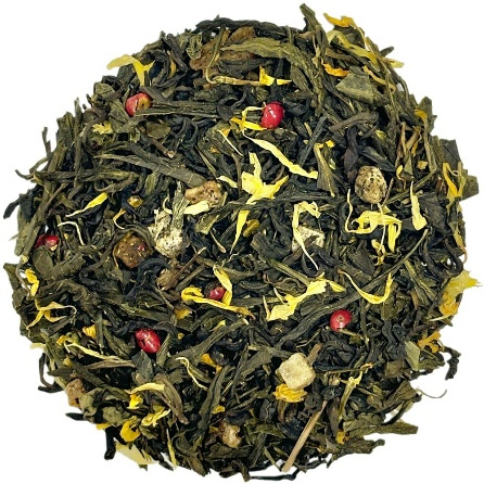 Зелений чай ароматизований шматочками імбиру і рожевим перцем (відомими своїм ефектом спалювати жир), шматочками папайї, пелюстками чорнобривців і сафлору. Ефективно втамовує спрагу і, одночасно, зігріває в холоднечу.